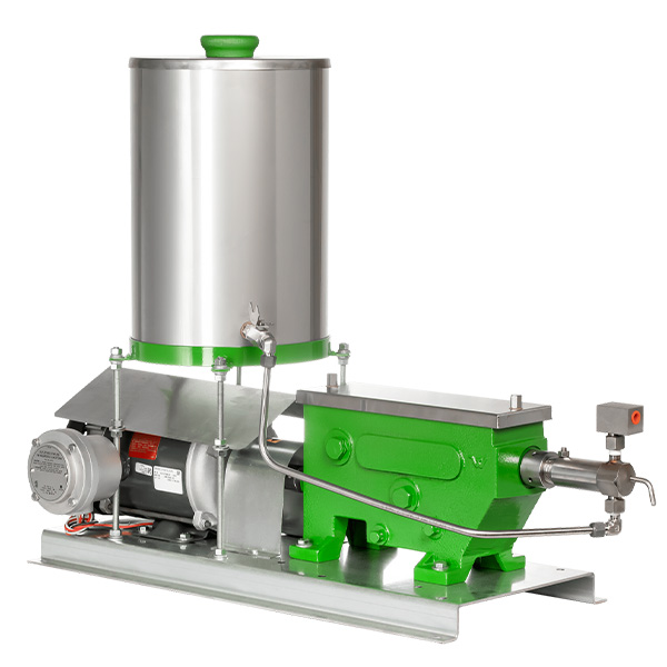 The model MA chemical injection pumps are designed to be driven by an electric motor. These positive displacement pumps have removable fluid ends with interchangeable check valves, and a removable stainless steel cover for easy maintenance on the drivetrain.